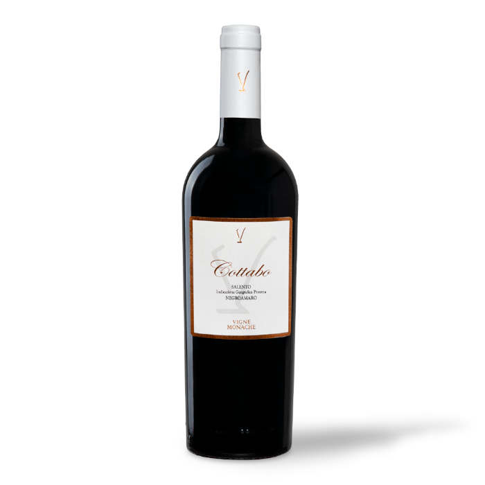 Dieser Cottabo Negroamaro wird in Manduria angebaut, in der Provinz Taranto von Vigne Monache, ein Gebiet mit mediterranem Klima, warmen Tagen und milden Nächten, ideal für Negroamaro.